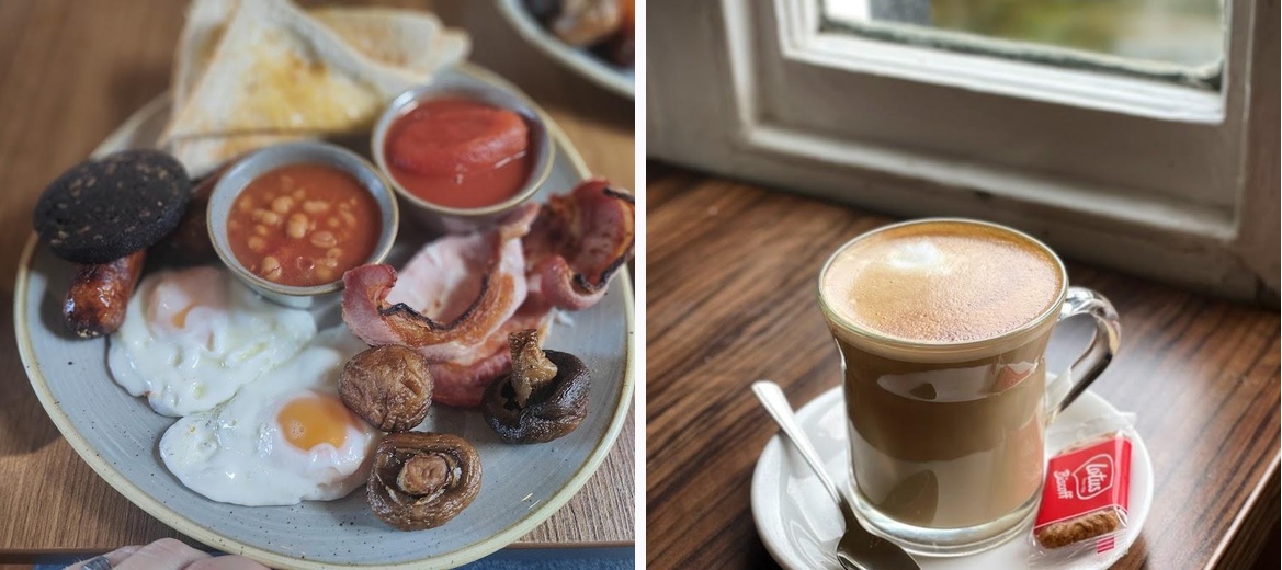Late lunch we had a large full English 😋 Very affordable indeed. Price includes tea/coffee and toast. We sat in the dog-friendly area, in a window seat, overlooking The River Dee. Cash only (there is a cash machine inside the bistro). Friendly staff, prompt service, hot and tasty food. Thank you!